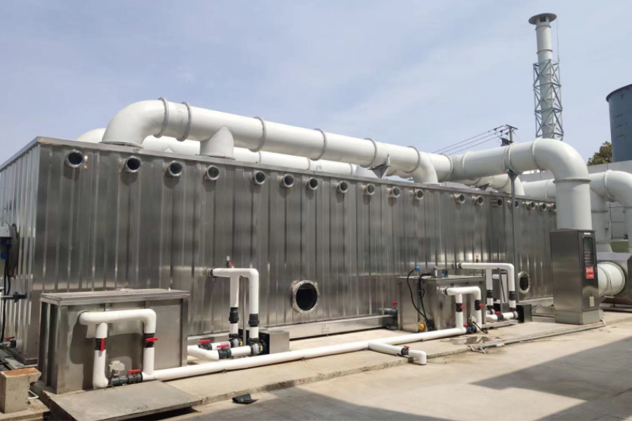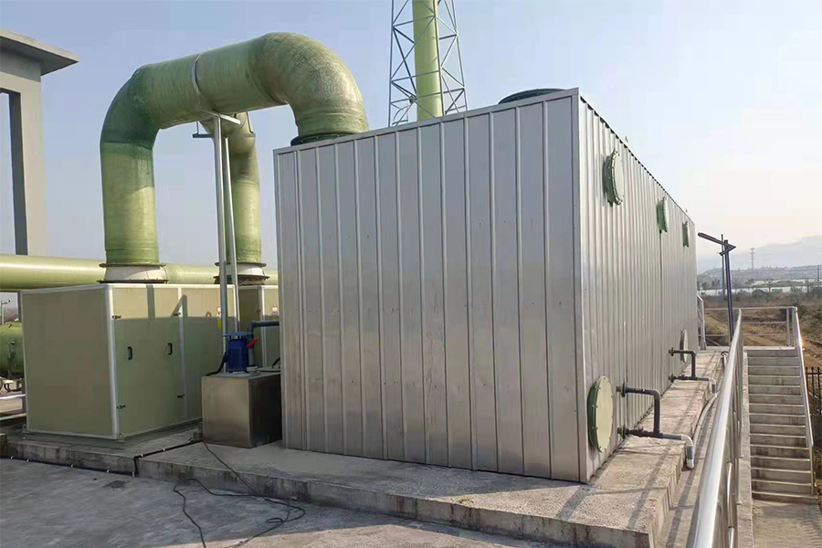 生物过滤工艺采用液体吸收和生物处理的组合作用,将人工筛选的特种微生物菌群固定于填料上,当臭气经 过填料表面,可从臭气中获得营养源的那些微生物菌群,在适宜的温度、湿度、pH 值等条件下,将会得到快 速生长、繁殖,并在填料表面形成生物膜,当臭气通过其间,有机物被生物膜表面的水层吸收后被微生物吸 附和降解,得到净化再生的水被重复使用。污染物去除的实质是以臭气作为营养物质被微生物吸收、代谢及 利用。经处理的臭气通过排口达标排放。