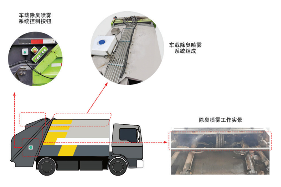 在日常生活中,居民投放的生活垃圾需要用垃圾运输车转运至后续处理站点。由于生活垃圾中有大量有机物,会在堆放、装卸、转运这一系列过程中腐烂发臭,产生带有强烈刺激性气味的氨气、硫化氢及甲硫醇,甲硫醚 和其它挥发性有机物等气体,并不断发散出来。若不进行除臭处理,会对垃圾运输沿途居民的日常生活带来非常大的影响。